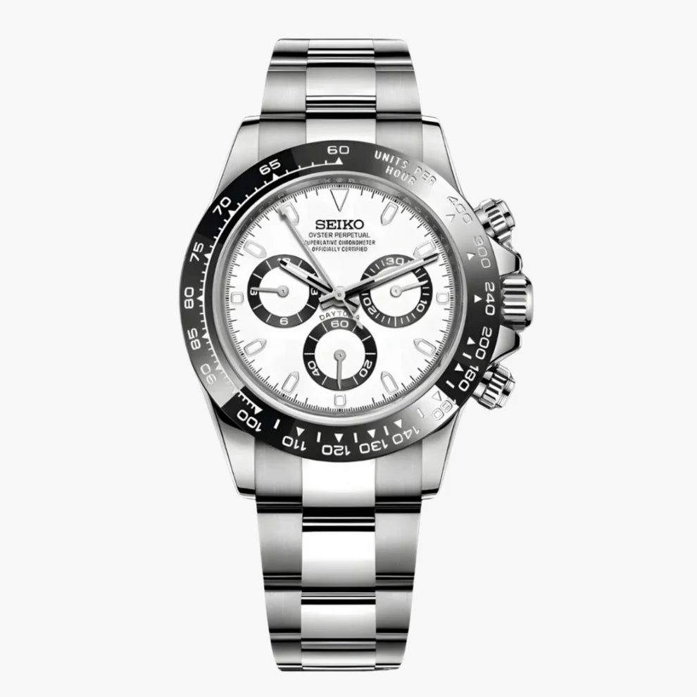 The Seiko Mod Daytona “Panda” is made for the modern enthusiast with an eye for history. It’s sharp, wearable, and designed to deliver that high-performance chrono look — without the waitlist or the six-figure price tag.