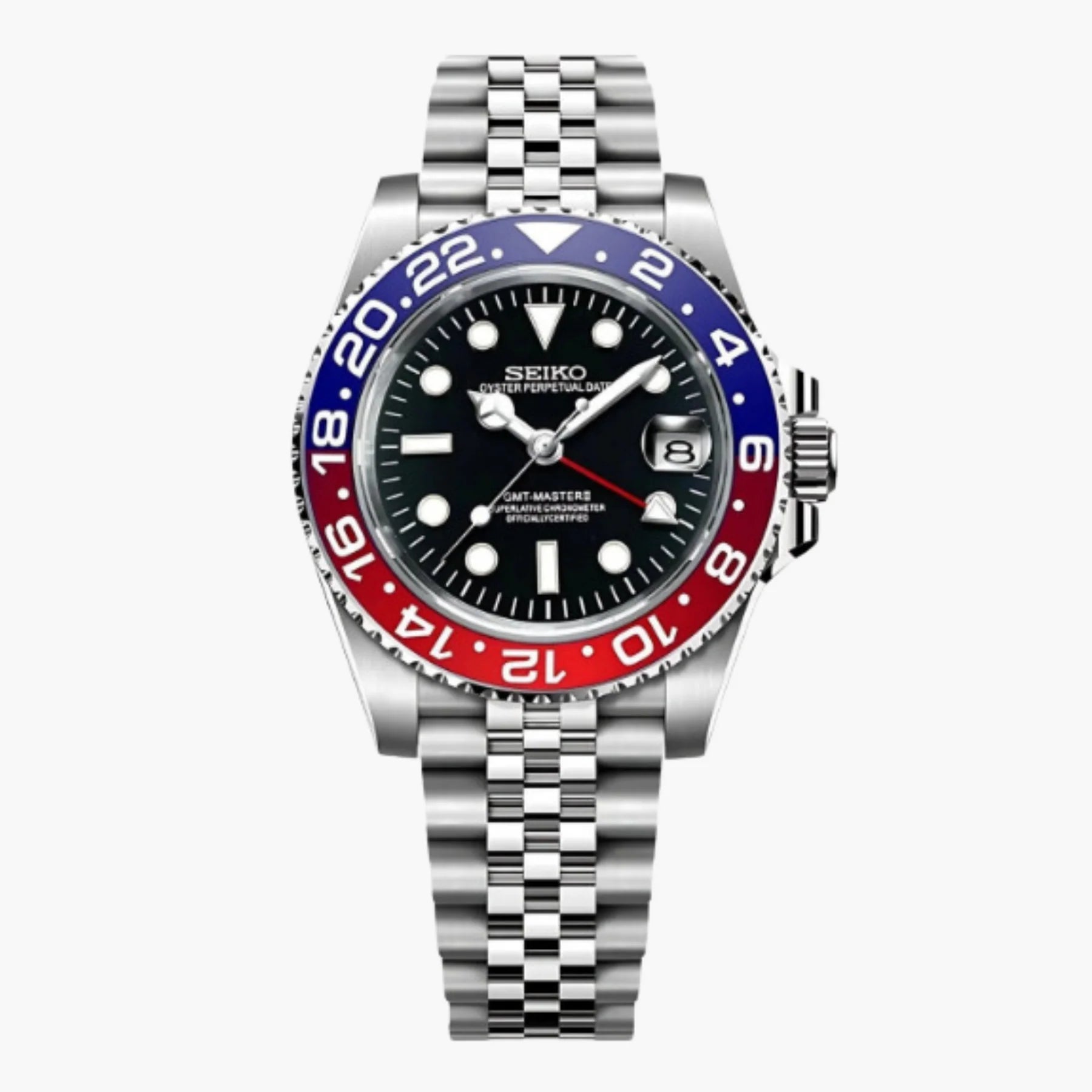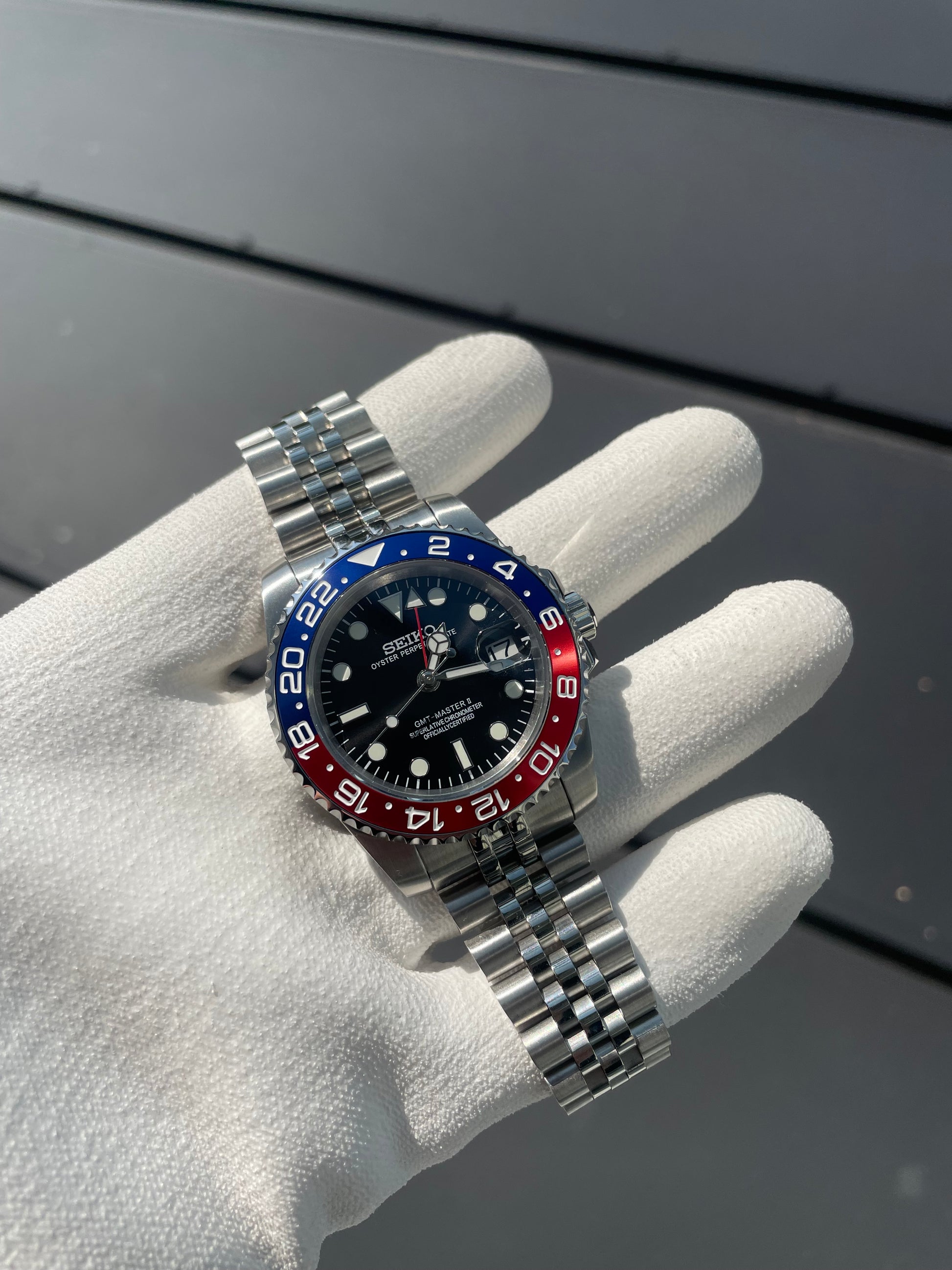 The Seiko Mod GMT II “Pepsi” is made for those who move — across borders, across time zones, and across styles. It’s a classic design reinterpreted with modern materials and unmistakable attitude.