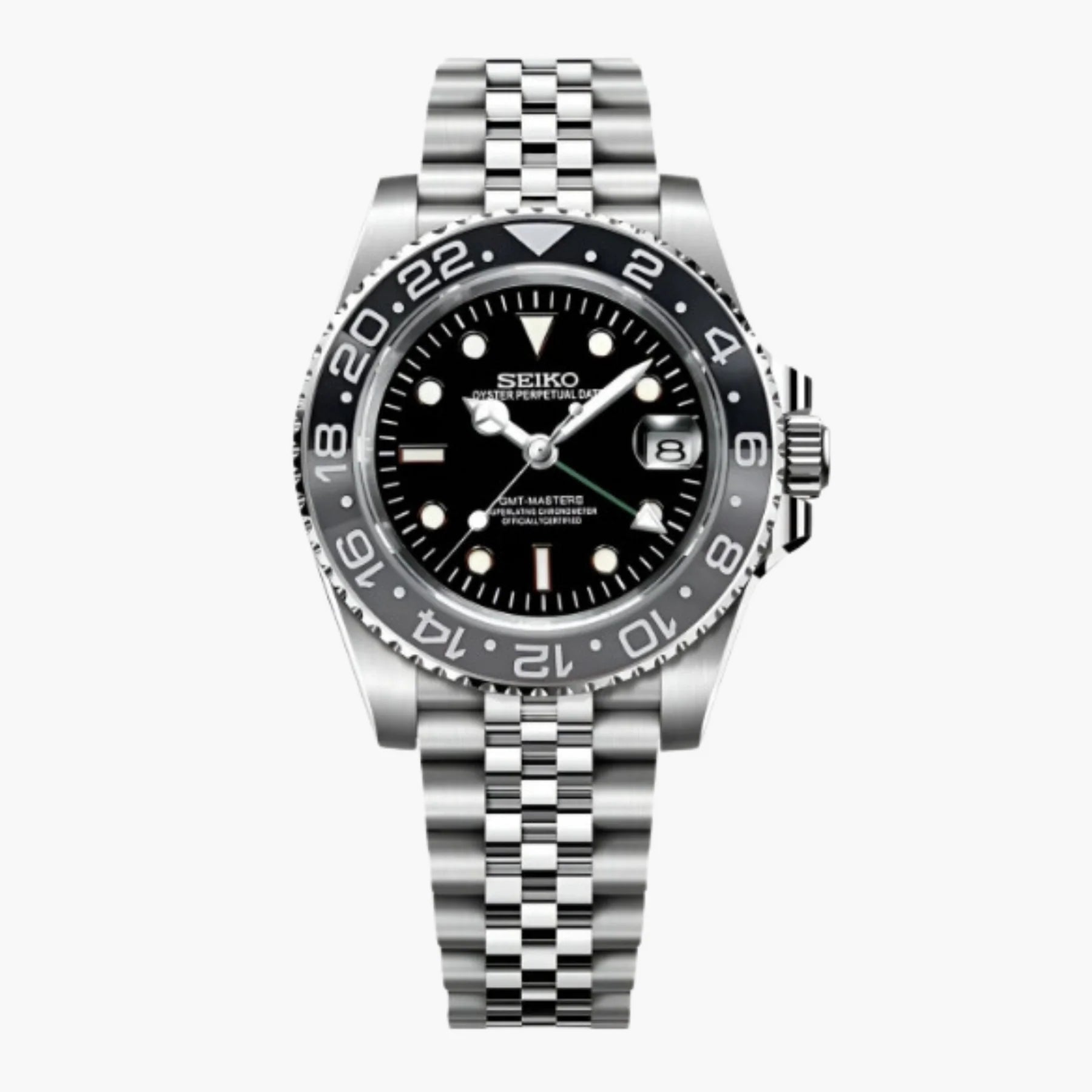 The Seiko Mod GMT II “Bruce Wayne” is a watch for those who don’t need to announce themselves. Understated yet unmistakable, it’s the perfect companion for late nights, long flights, and quiet confidence.